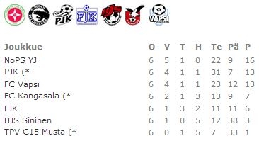 - TPV Valkoinen - FC Haka Valkoinen 6-0 (#10 Nieminen, #10 Nieminen, #10 Nieminen, #22 Tawast, #23 Sarelainen, #7 Anttila)