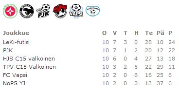 - TPV Valkoinen - HJS Valkoinen 3-0 (#10 Nieminen, #10 Nieminen, #10 Nieminen)