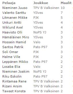 - PJK - TPV Valkoinen 1-4 (#10 Nieminen, oma maali, #10 Nieminen, #10 Nieminen)